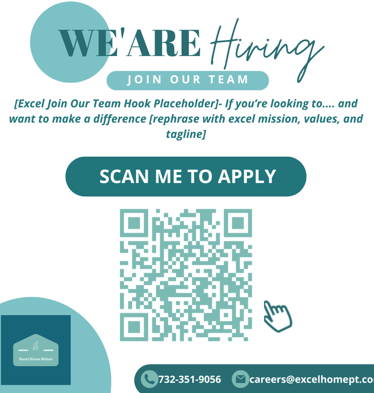 We are hiring passionate individuals to help us grow. Explore exciting career opportunities and become part of our innovative company dedicated to excellence and teamwork. Grow your career today with Excel In-Home Rehab & Physical Therapy.